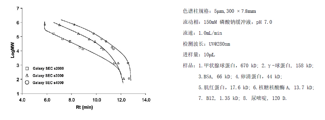 Galaxy 系列體積排阻色譜柱基于獨有的表面修飾技術,在5μm 高純度具有良好機械穩定